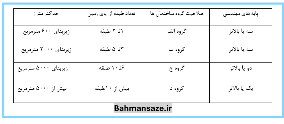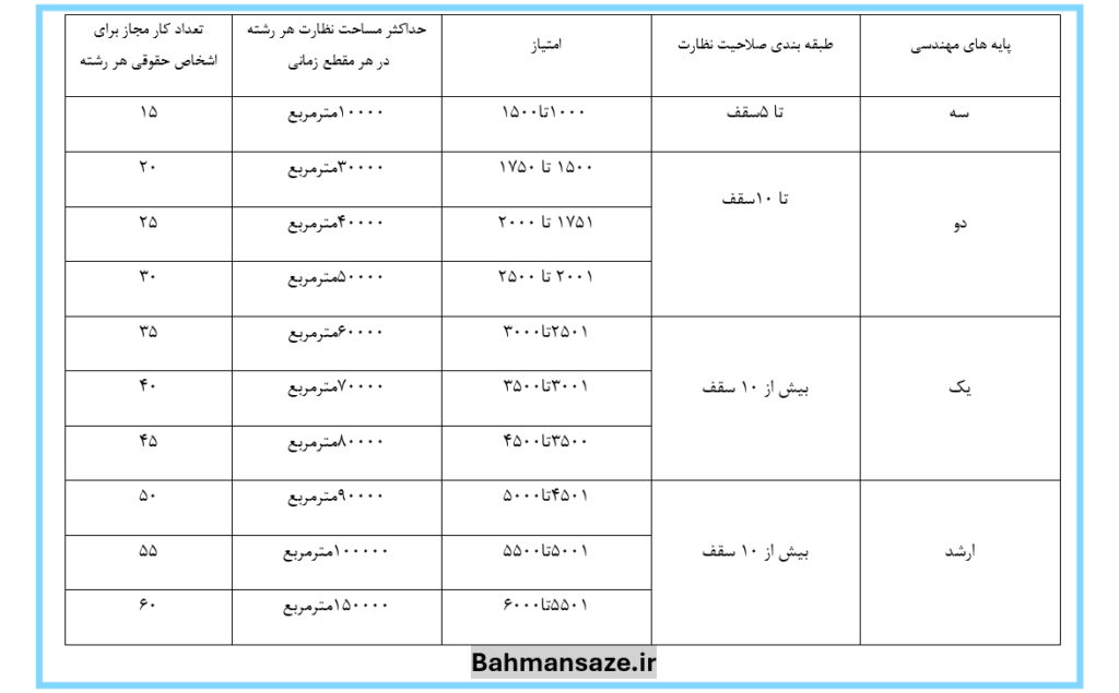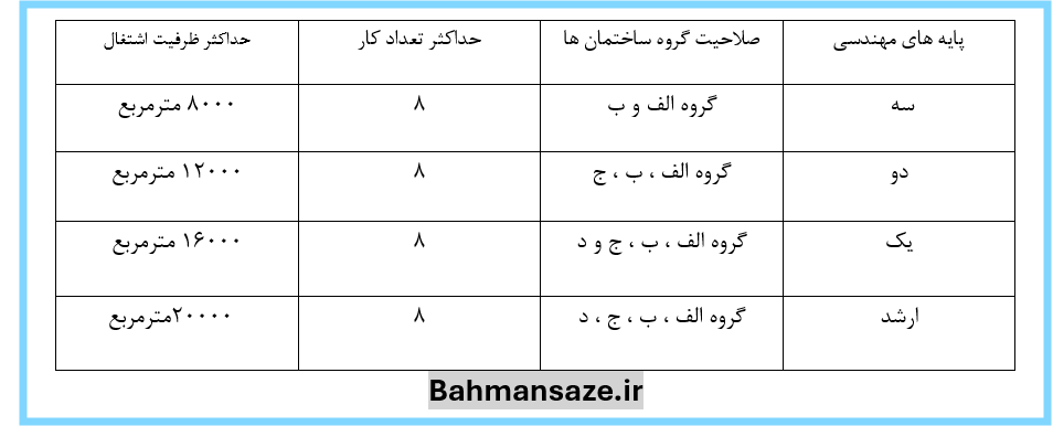 حدود صلاحیت و ظرفیت اشتغال به کار مهندس ناظر حقیقی و حقوقی :
