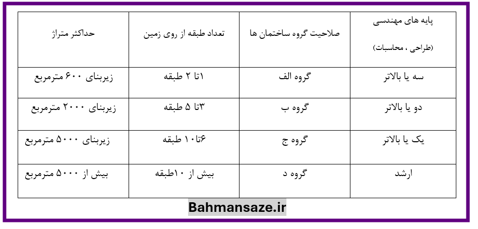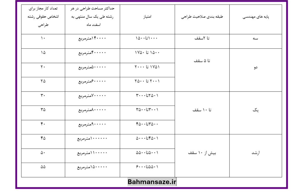 حدود صلاحیت و ظرفیت اشتغال به کار مهندس طراح حقیقی و حقوقی: